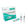 · Cuenta con aguja la cual consta de una cánula de metal afilado en uno de sus extremos y ensamblado en el otro a un cono de acople hembra que encaja en el conector de acople macho de la jeringa.